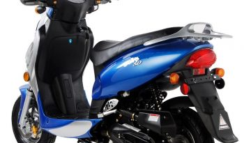 Boom Motors did a great job on the look of this vehicle with the sporty metallic paint and accessories giving the vehicle a great modern look that is a perfect affordable scooter for college students. At this price point and the advantage of getting 100 mpg, this vehicle is perfectly designed for students to get around campus or for the financially conscious to take it to and from the local market. There is plenty of storage in the trunk, by the riders knees and under the seat. The foot platform is wide and helps the scooter’s rider feel less cluttered. Thanks to the all-around padded seat, the MVP 50 will help riders feel the ultimate comfort when they ride. The elongated seat will help you to feel balanced and safe and can hold an extra passenger. The MVP 50cc high quality scooter is equipped with disc brakes, DUAL headlights, blinkers, a horn, and is completely street legal.